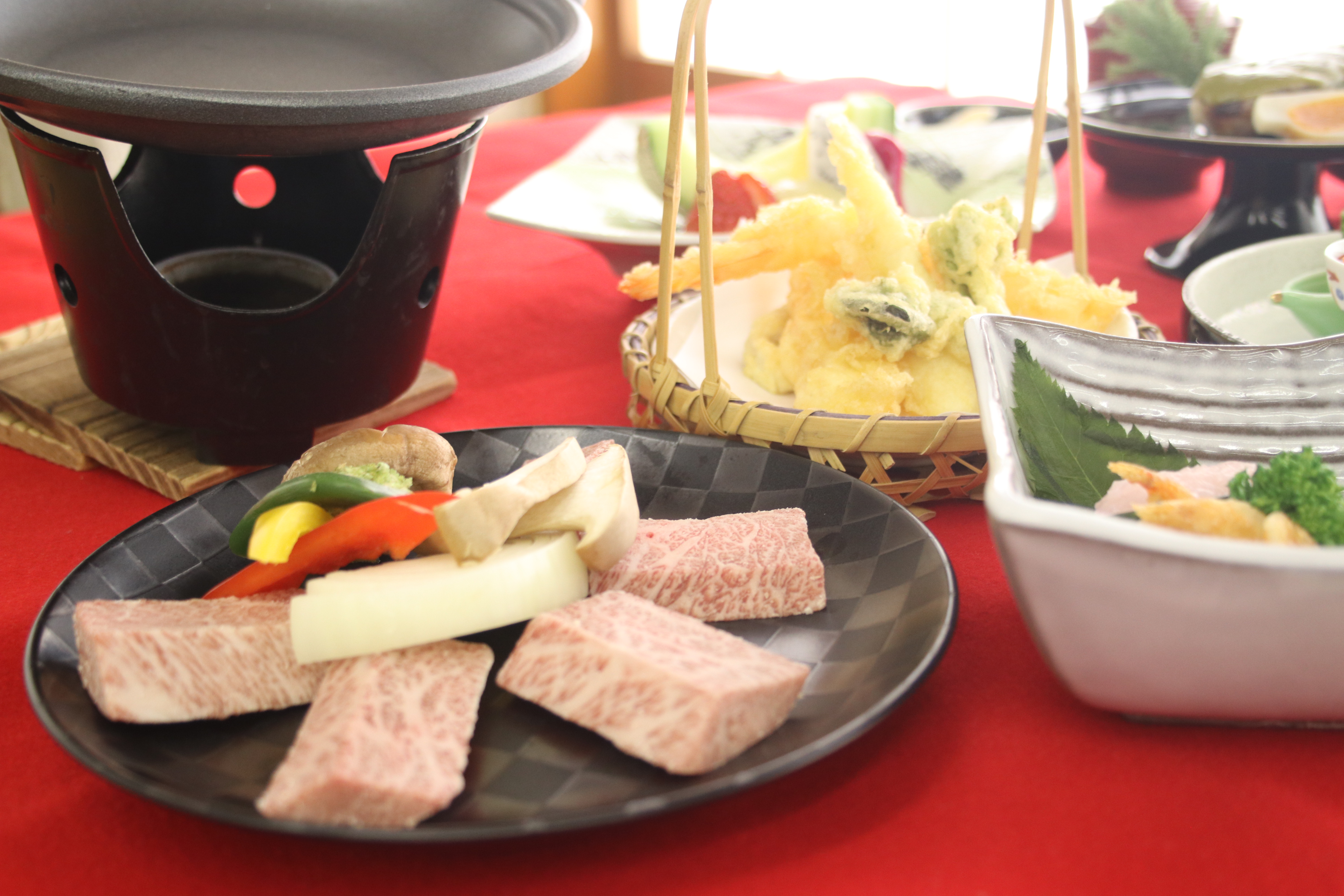 通常の会席料理に特選牛肉のステーキが付いた贅沢プランです。
